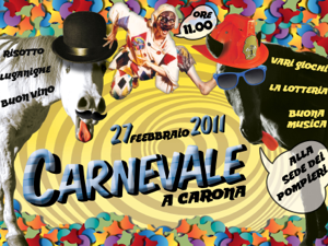 Il Carnevale di Carona verrà proposto sempre dalla nostra associazione Pompieri Carona. Non vi è ancora una proposta del nome, si vedrà in futuro, e si continua la ricerca chiedendo agli anziani del paese....