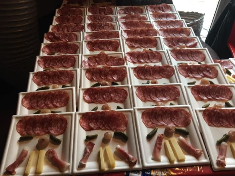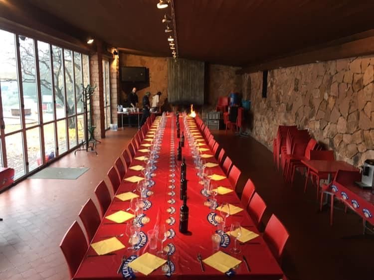 già alle 08:30 i primi ad accendere un caloroso fuoco nei caminetti del pavillon, poi le volontarie hanno iniziato a decorare la sala e la tavolata in onore degli ospiti, un solo tavolo per tutti gli oltre 40 invitati e stare seduti tutti insieme. La cucina ha iniziato a preparare la polenta dalle nove, con l’arrivo dei primi invitati abbiamo stappato le bottiglie di prosecco offerte dal gerente del bar Tennis di Carona, Luciano.